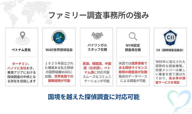 - ポイント:現地の法律や文化を熟知した探偵事務所を選ぶことが成功の鍵です。
